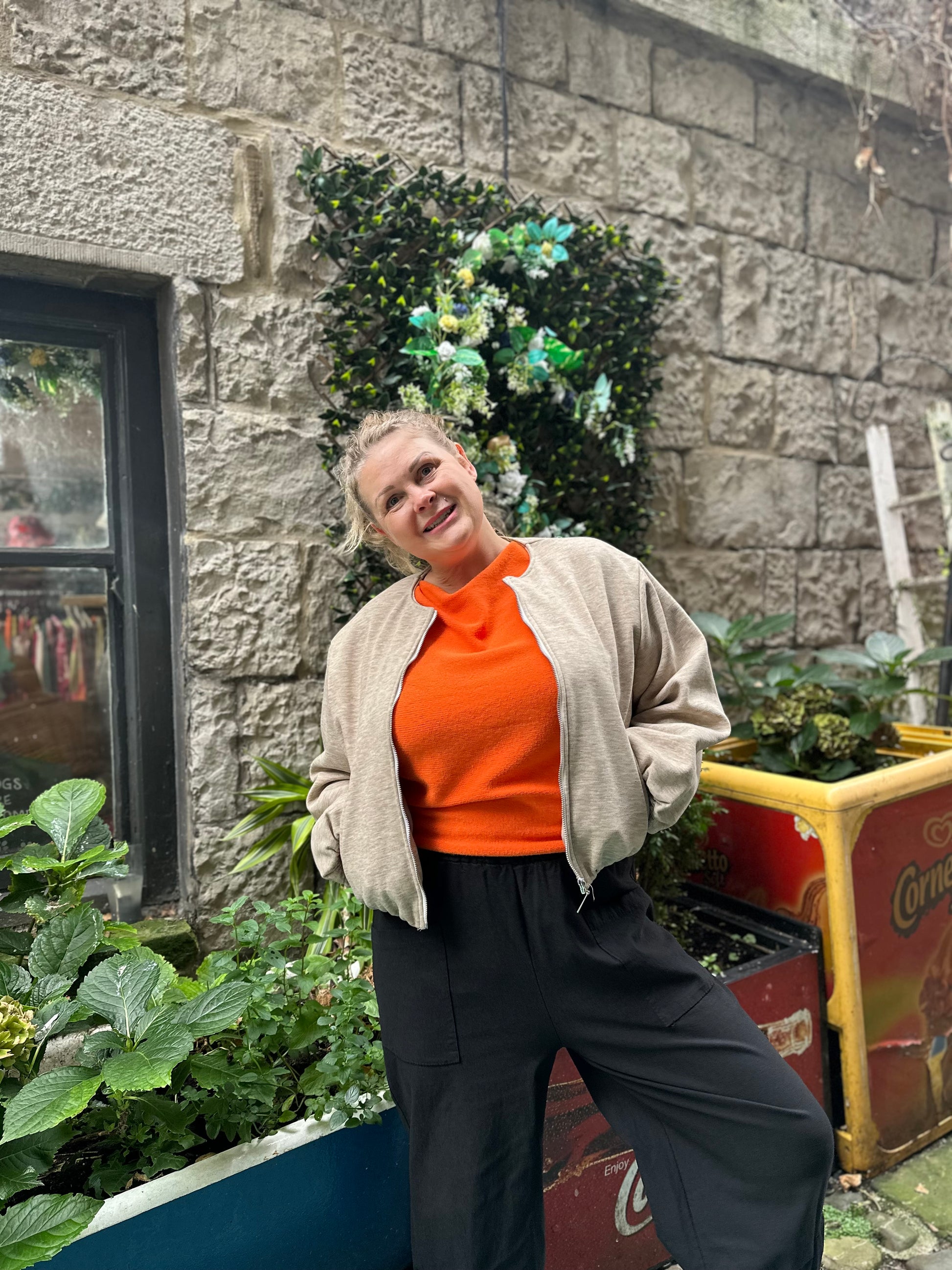 Beige Ruched Hem Bomber Jacket Size 8-18