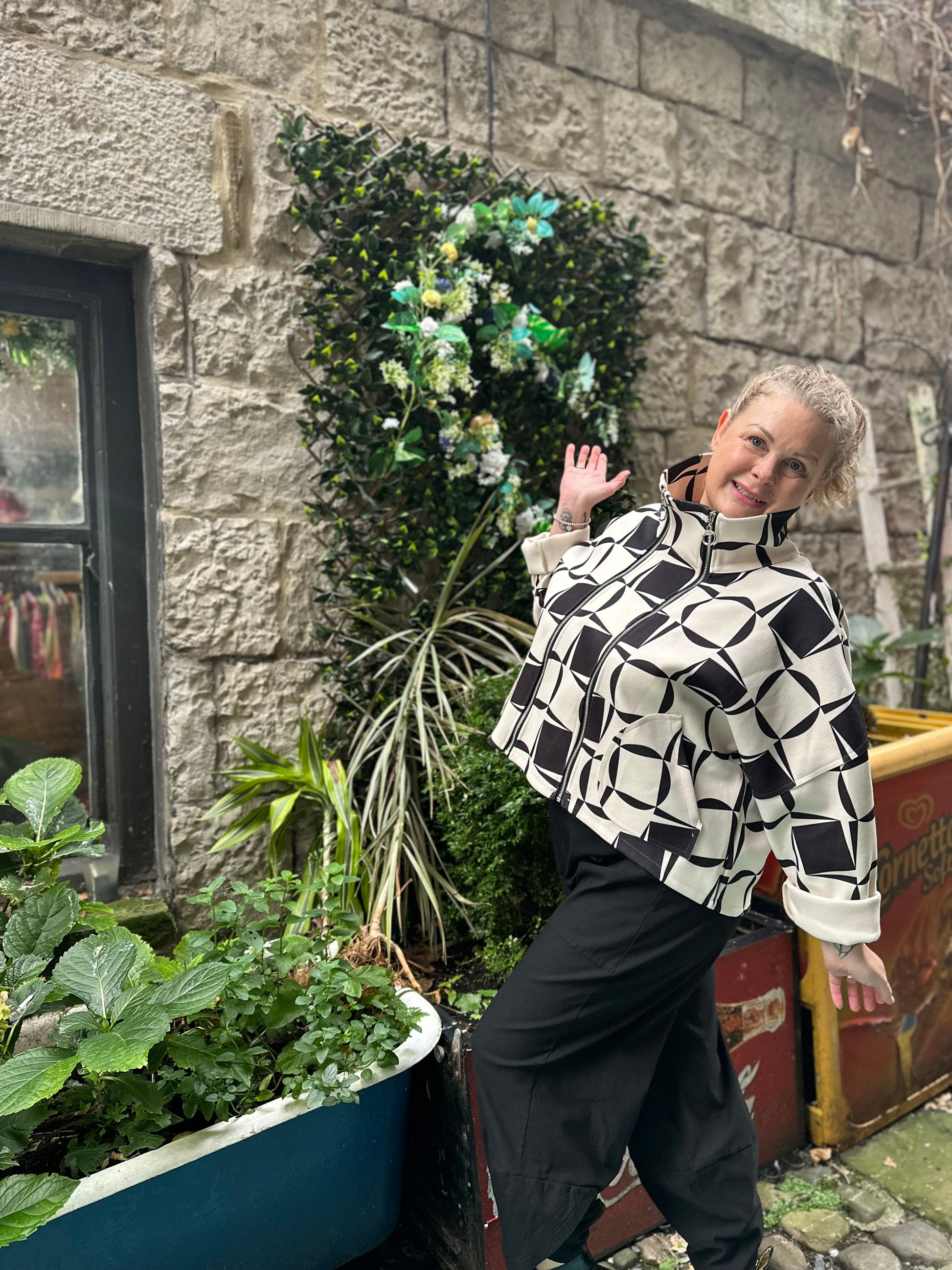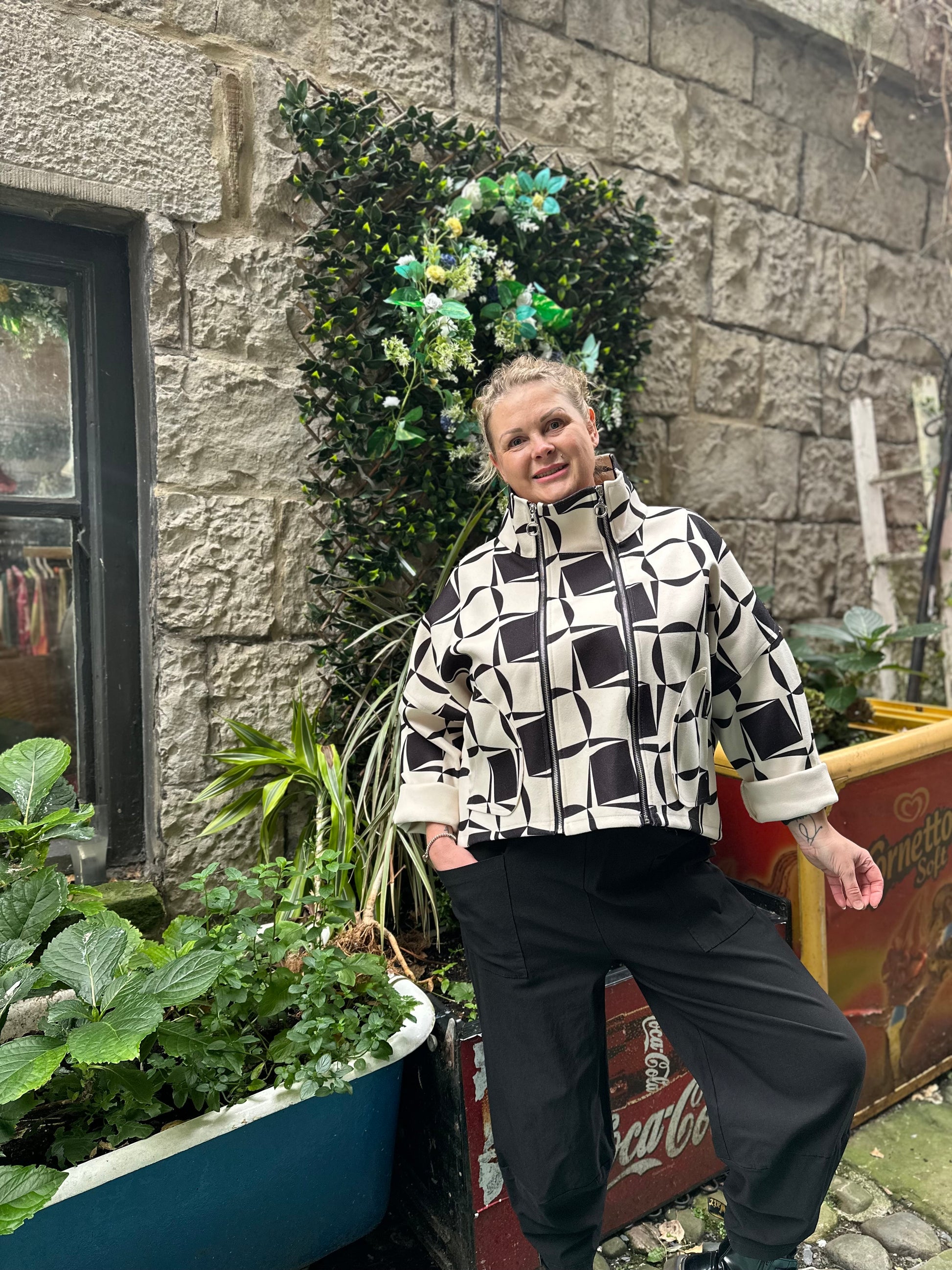 Stunning Double Zip Monochrome Jacket Size 8-18