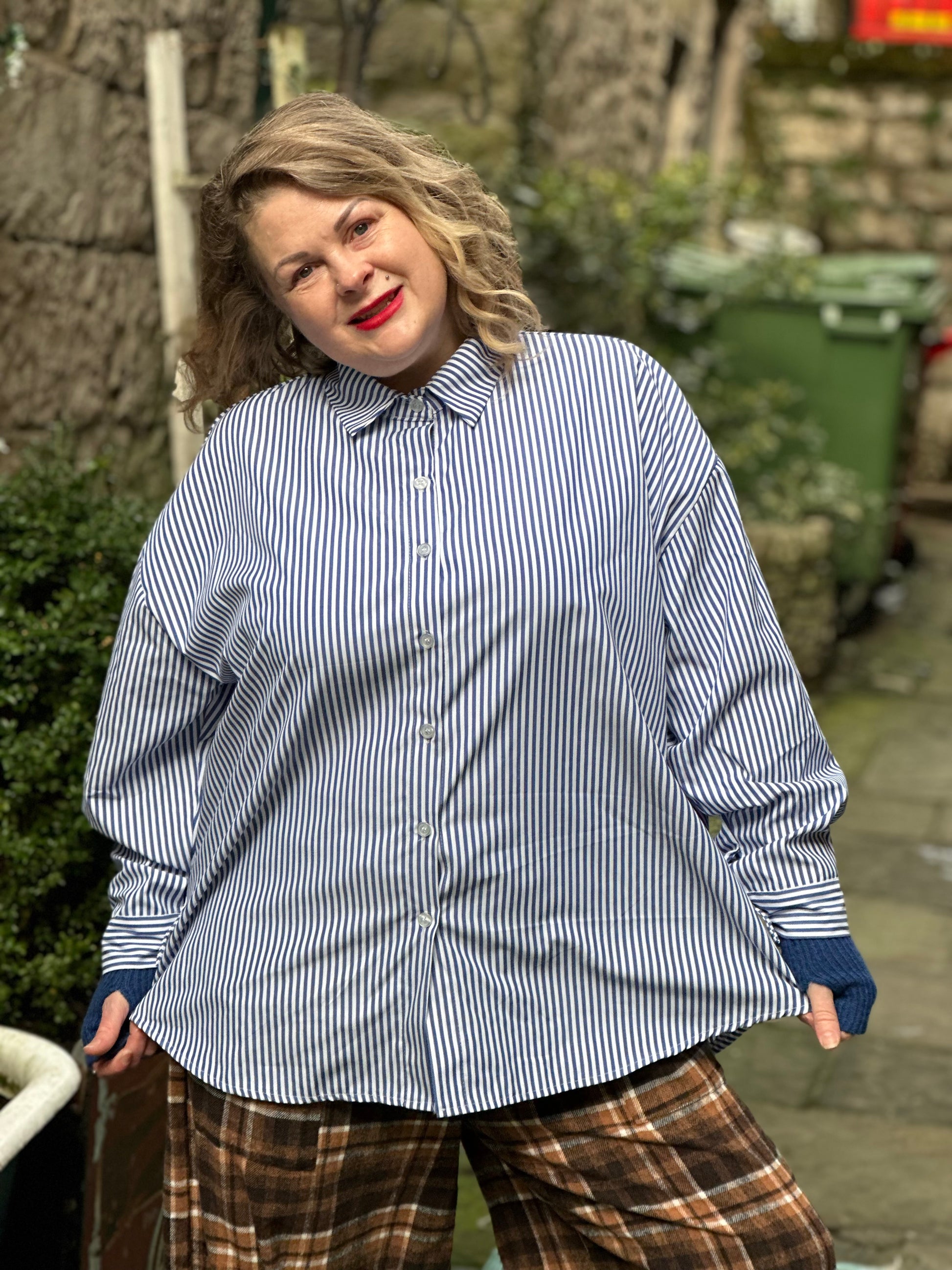 Effortless, timeless, and beautifully comfortable  our classic striped shirt is one of those pieces you will reach for again and again. Designed with a relaxed fit, soft fabric, and elegant tailoring, it pairs perfectly with jeans, trousers, or layered over knitwear for that effortless Iluvmemost look.