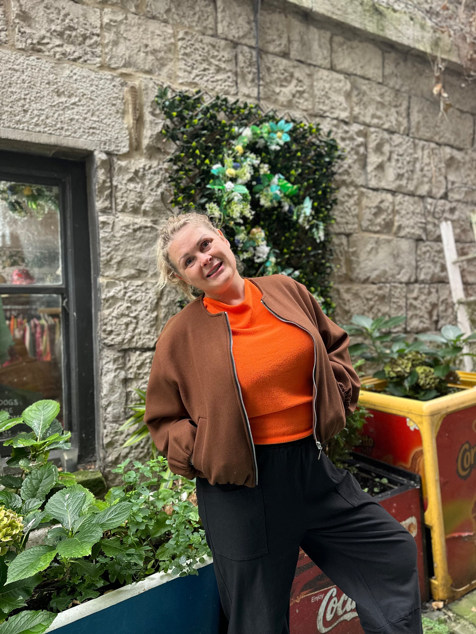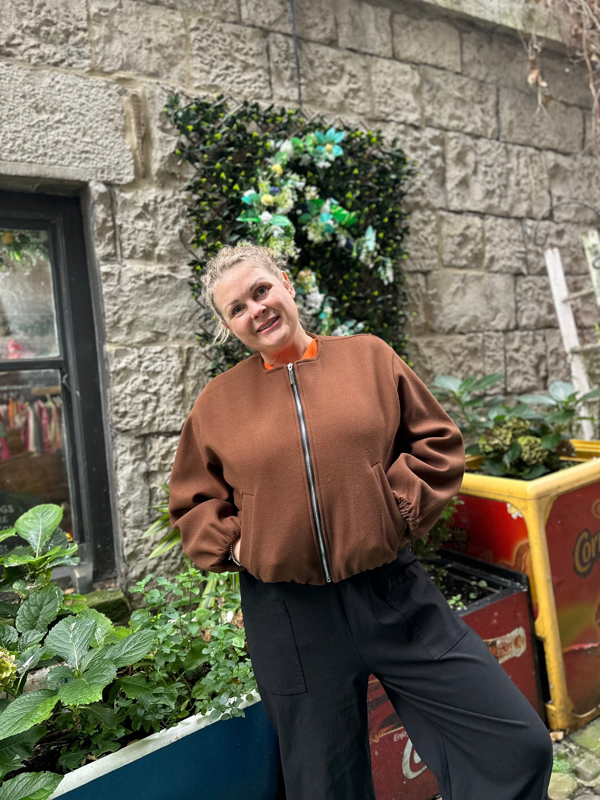 Ruched Hem Bomber Jacket Size 8-18 In Chocolate Brown