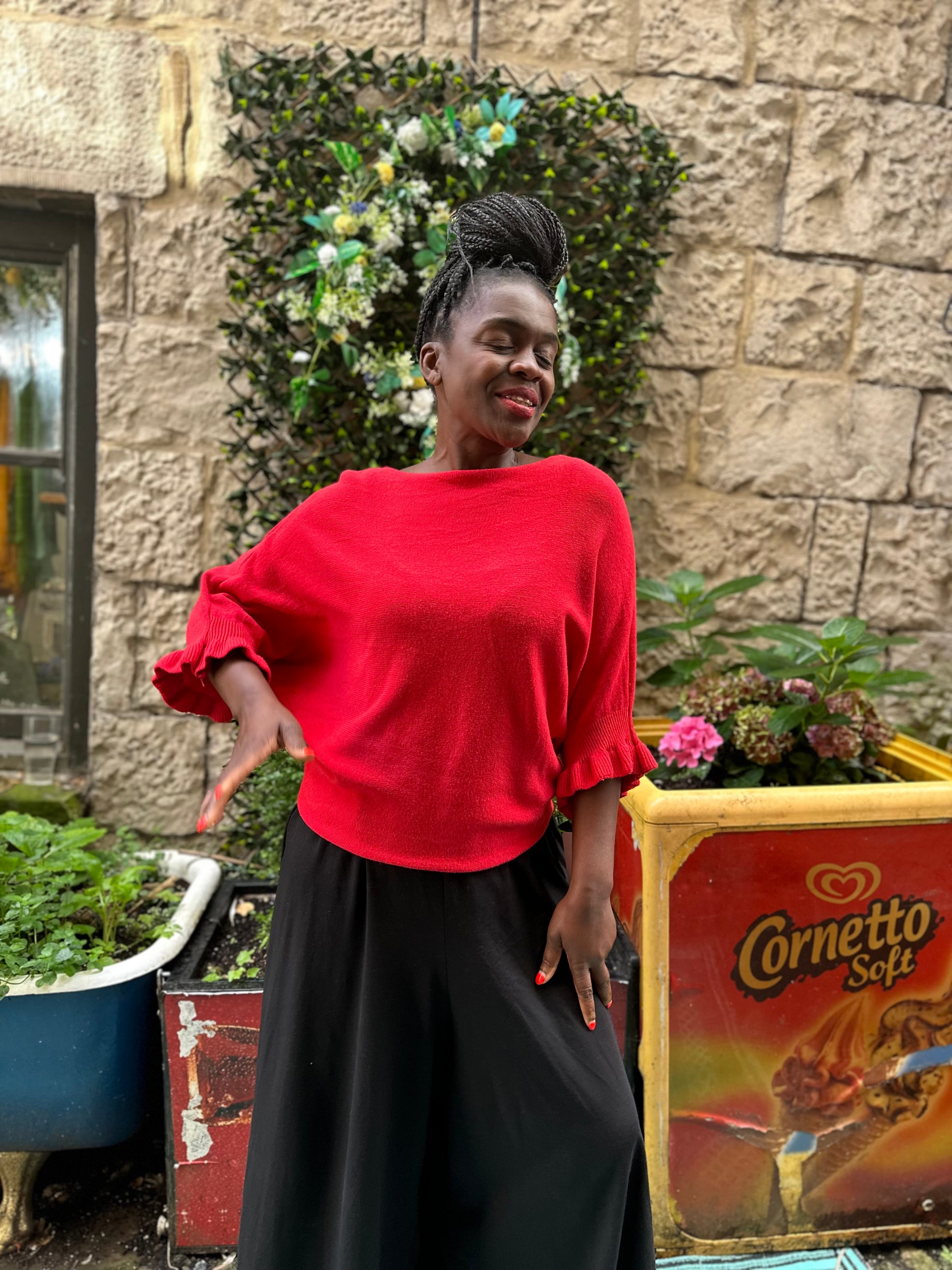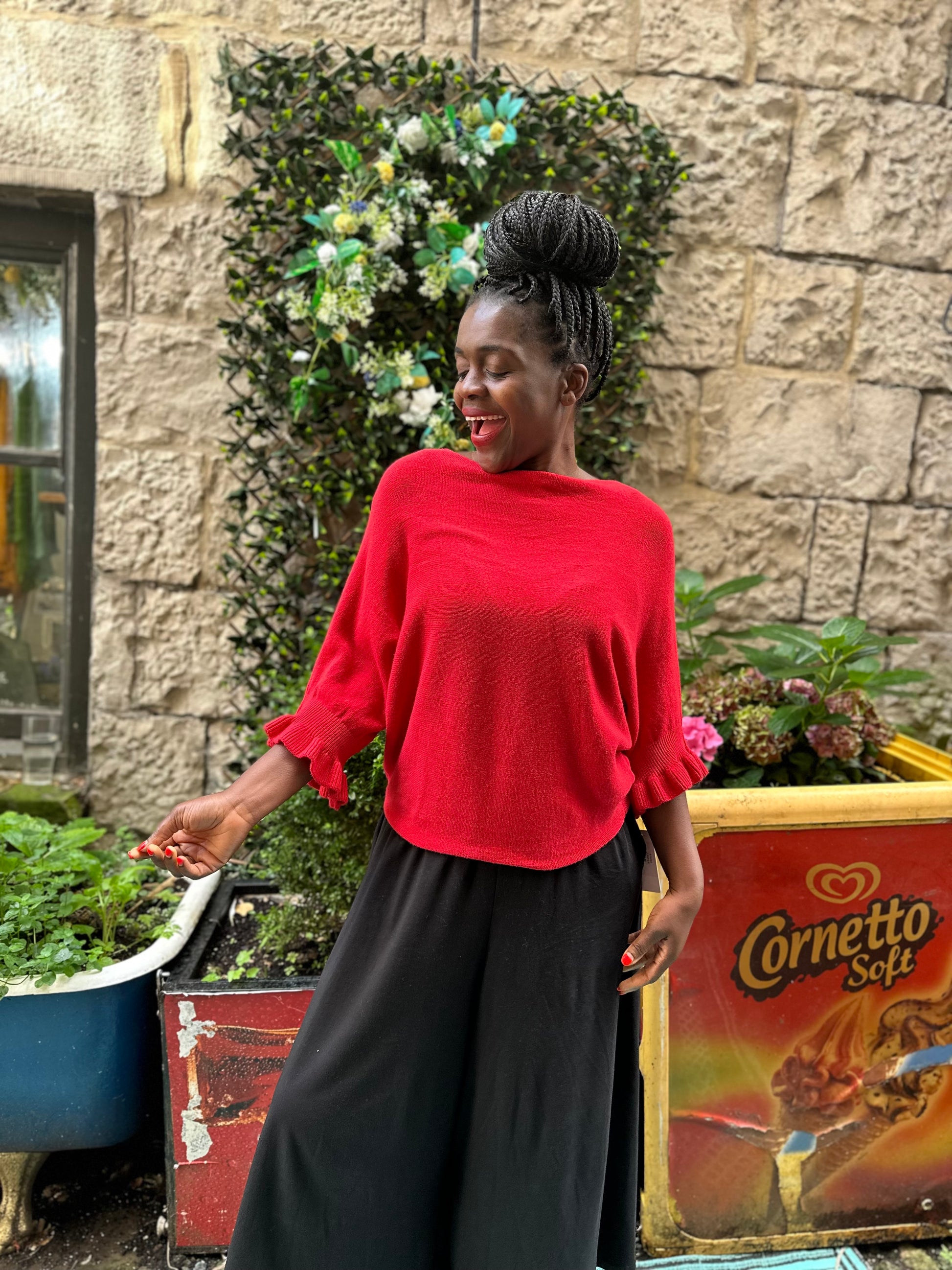 Stunning Red Ayana knitted Bateau Neckline Short Sleeve Jumper Size 8-16