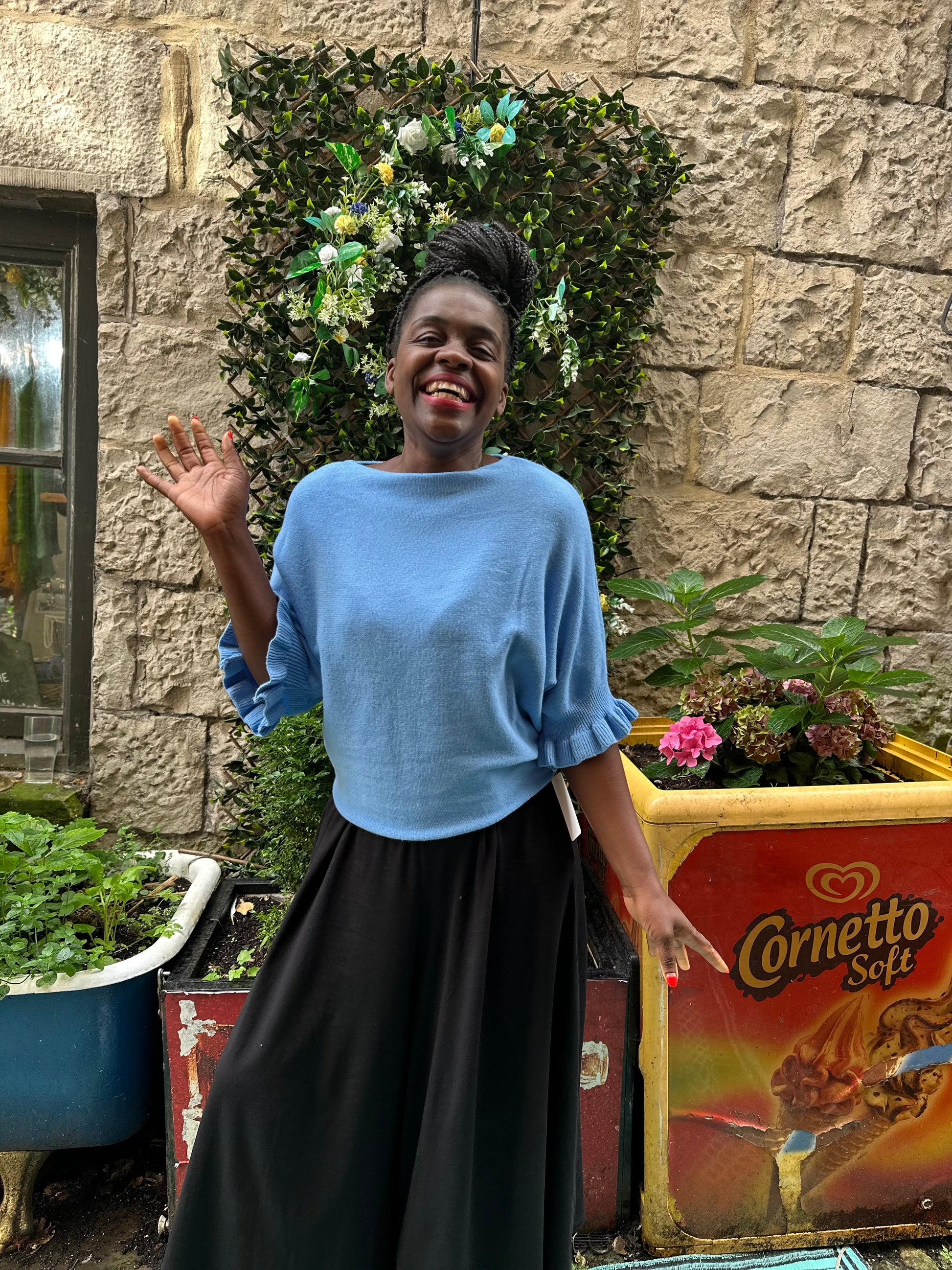Stunning Power Blues Ayana knitted Bateau Neckline Short Sleeve Jumper Size 8-16