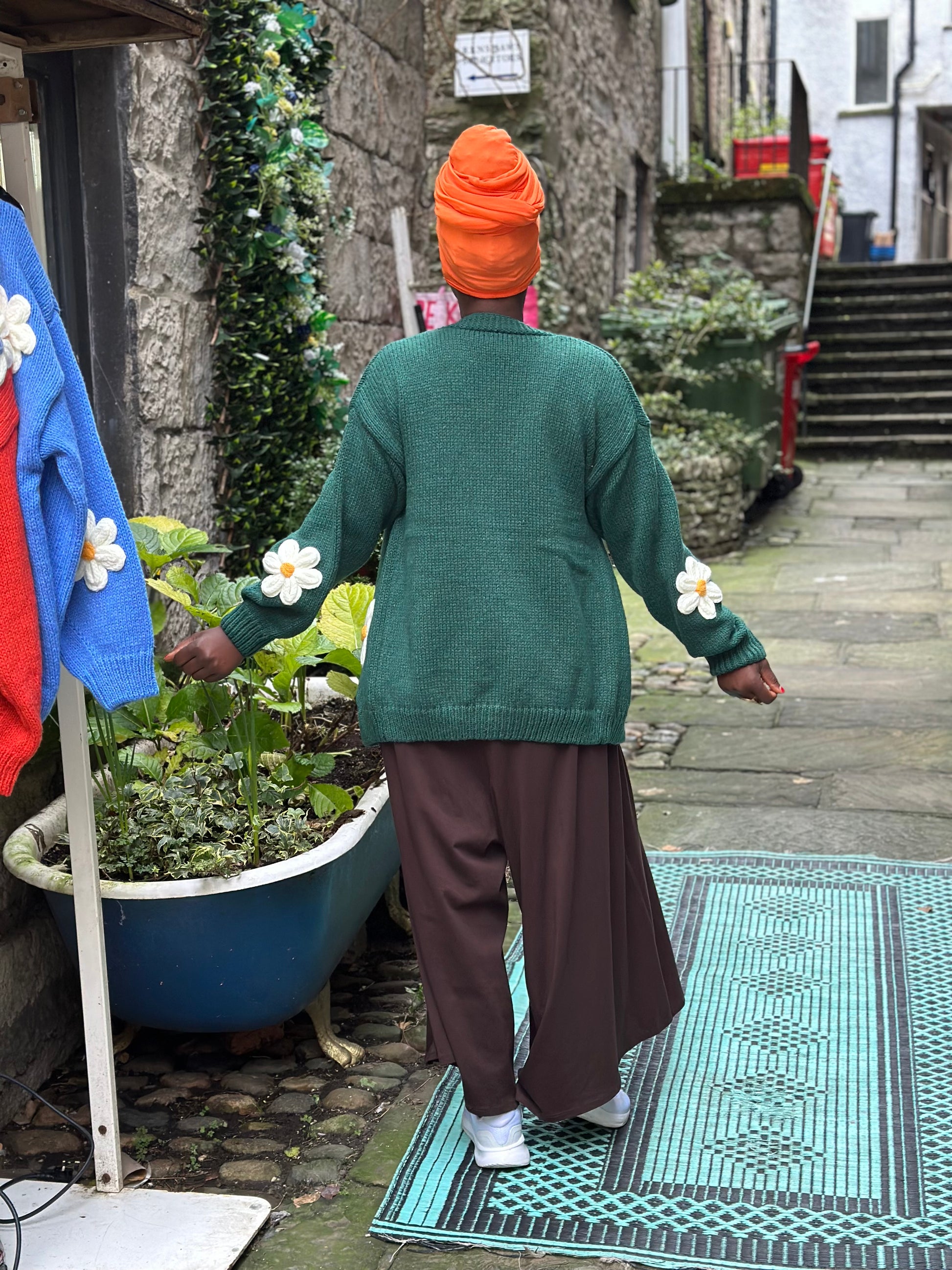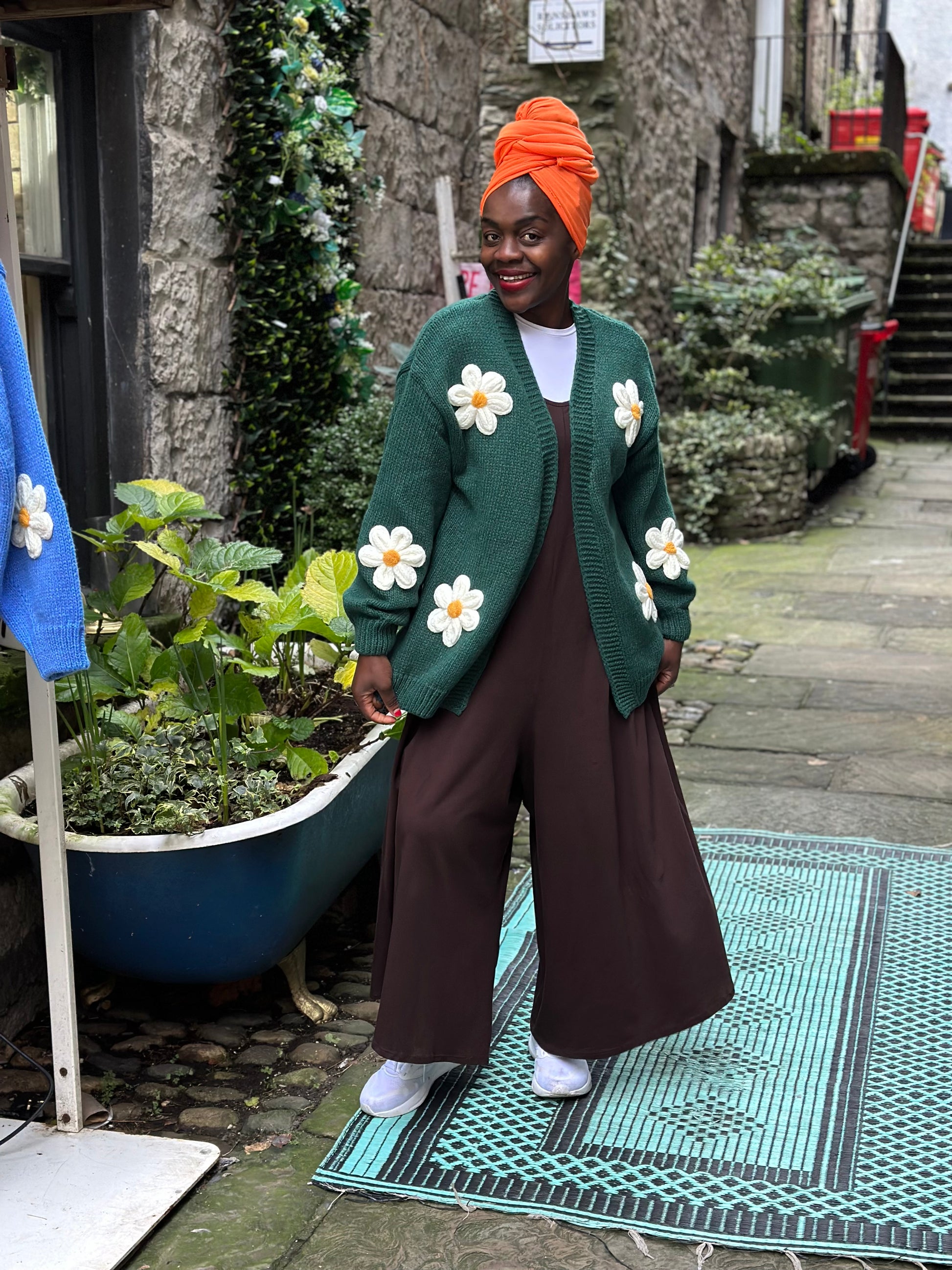 Stunning Soft Knit Daisy Moo Cardigan In Bottle Green Size S/M