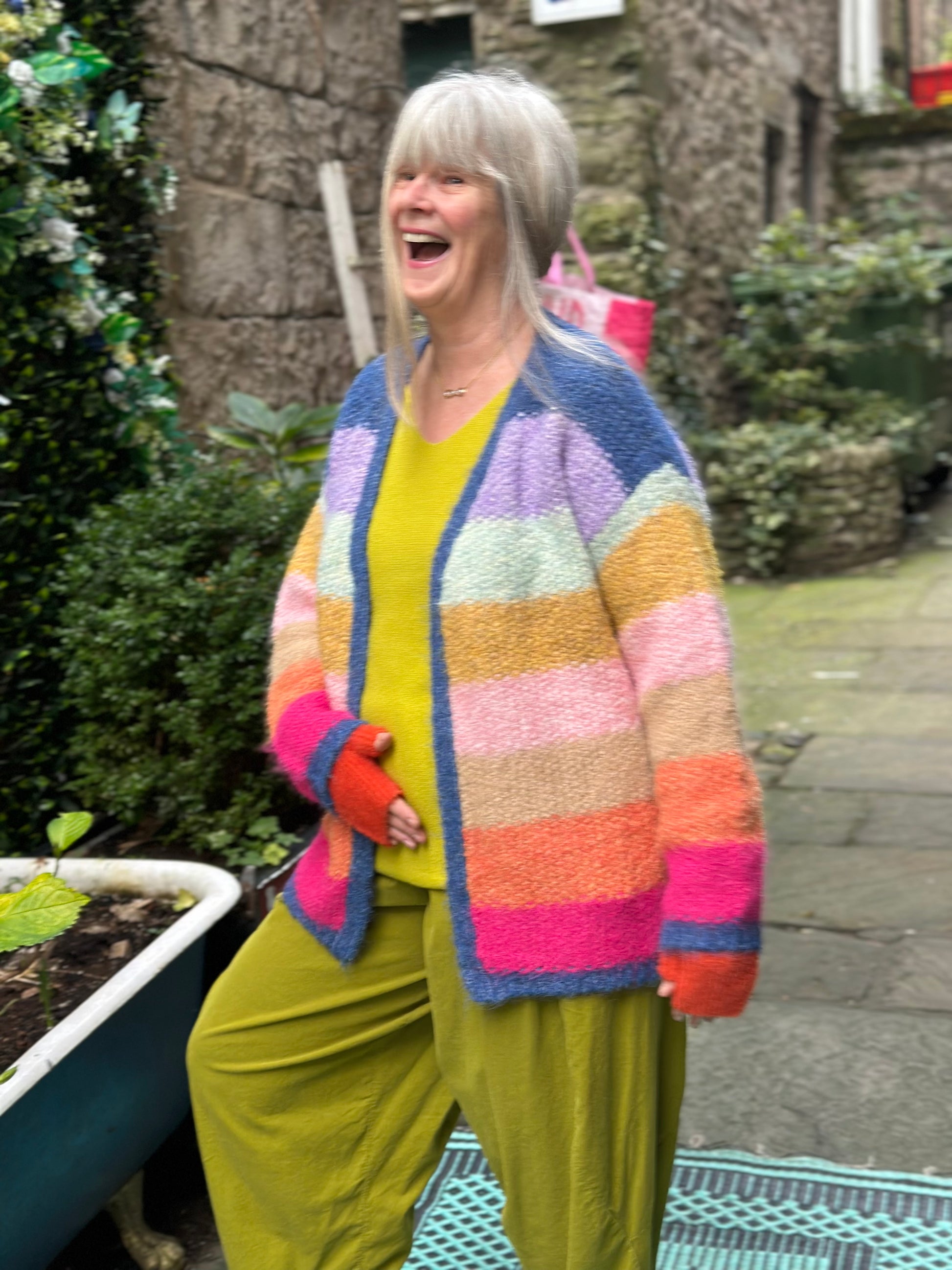 Stunning Soft Knit Woolly Striped Cardigan Size L