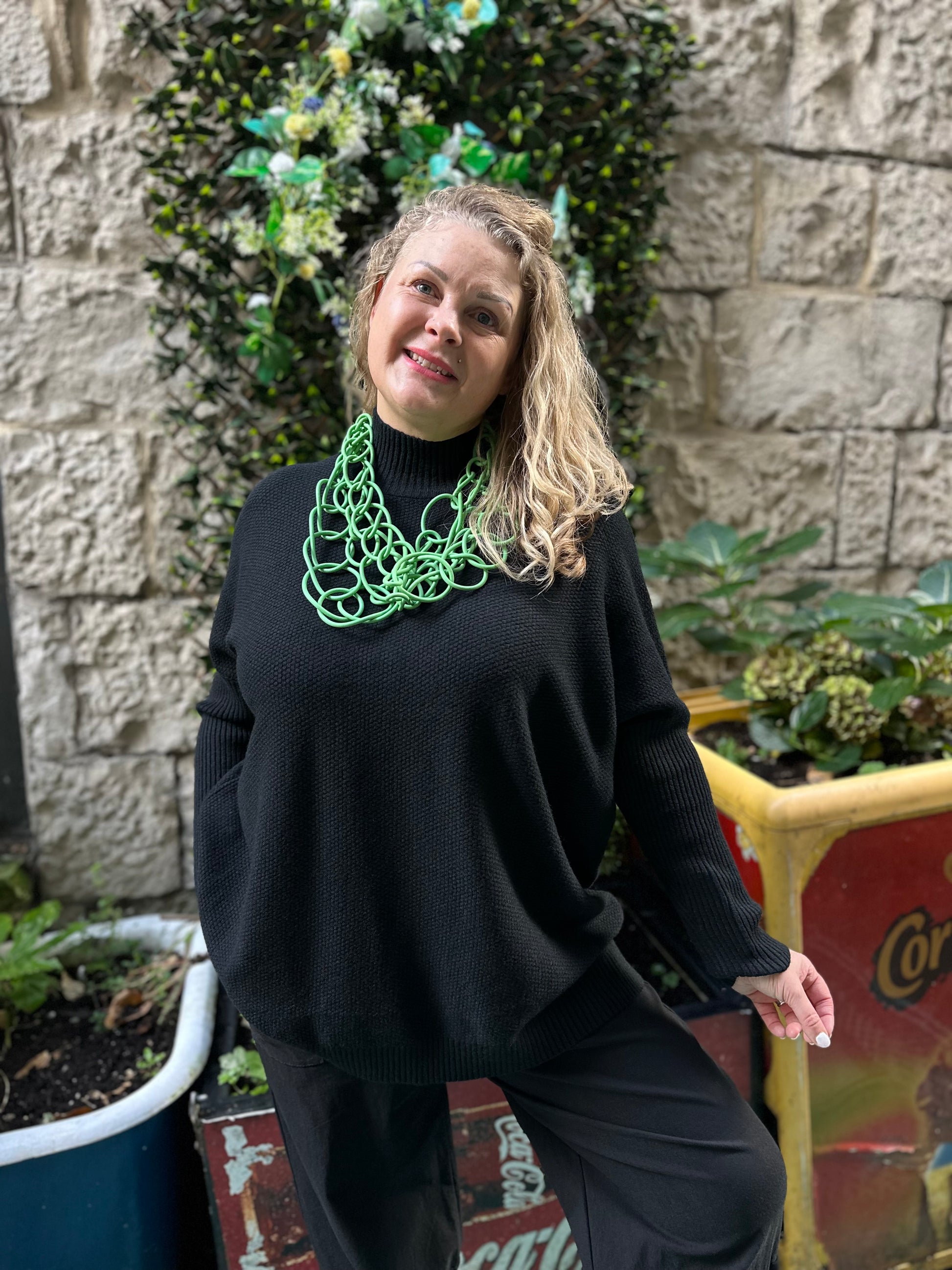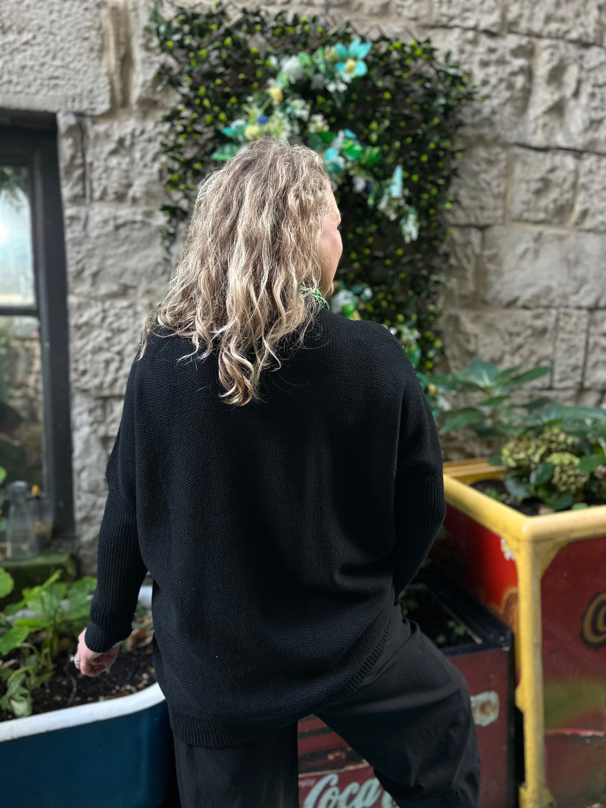 Stunning Black Waffle Knit Jumper Fits Size 10-20